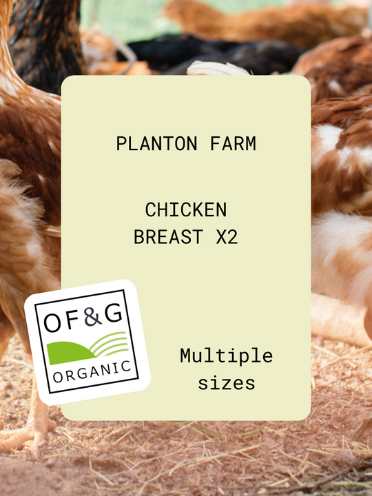 Two tender, organic chicken breast fillets from pasture-raised birds. Lean, juicy, and full of natural flavour – perfect for healthy, versatile meals.